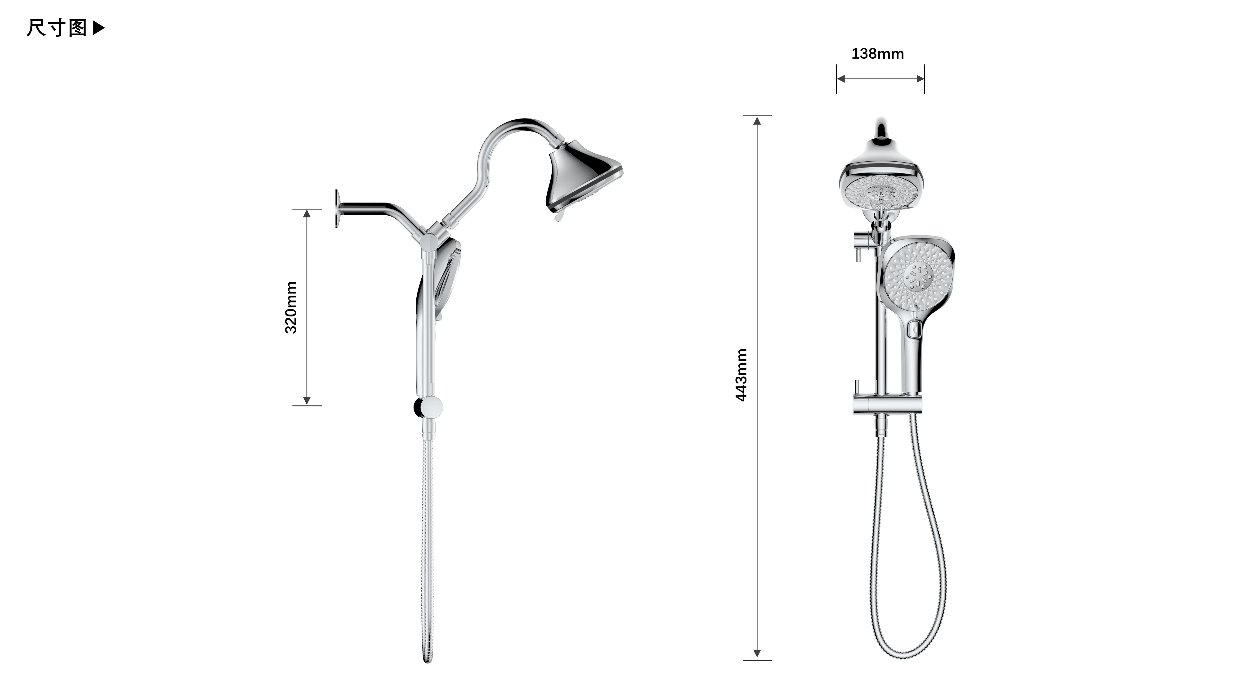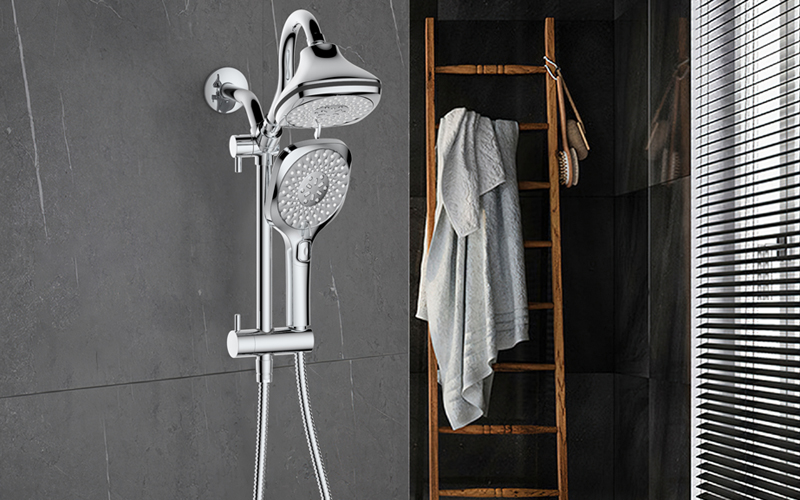 上出水彎管套裝;頂噴內(nèi)置球頭,可實現(xiàn)多角度旋轉(zhuǎn)調(diào)整;把手切換頂噴出水、花灑出水;轉(zhuǎn)動把手調(diào)節(jié)滑座高低;8功能出水花灑