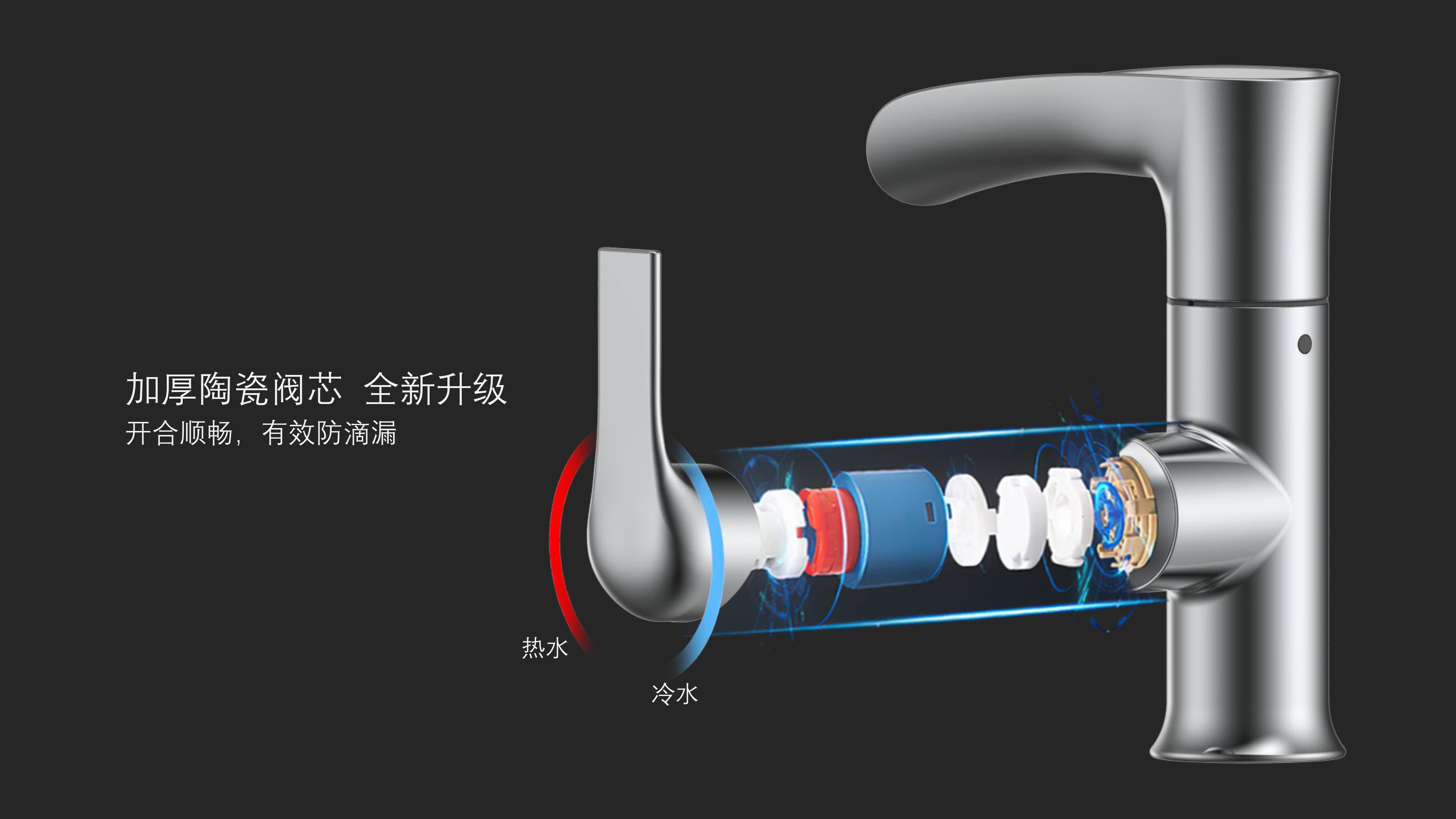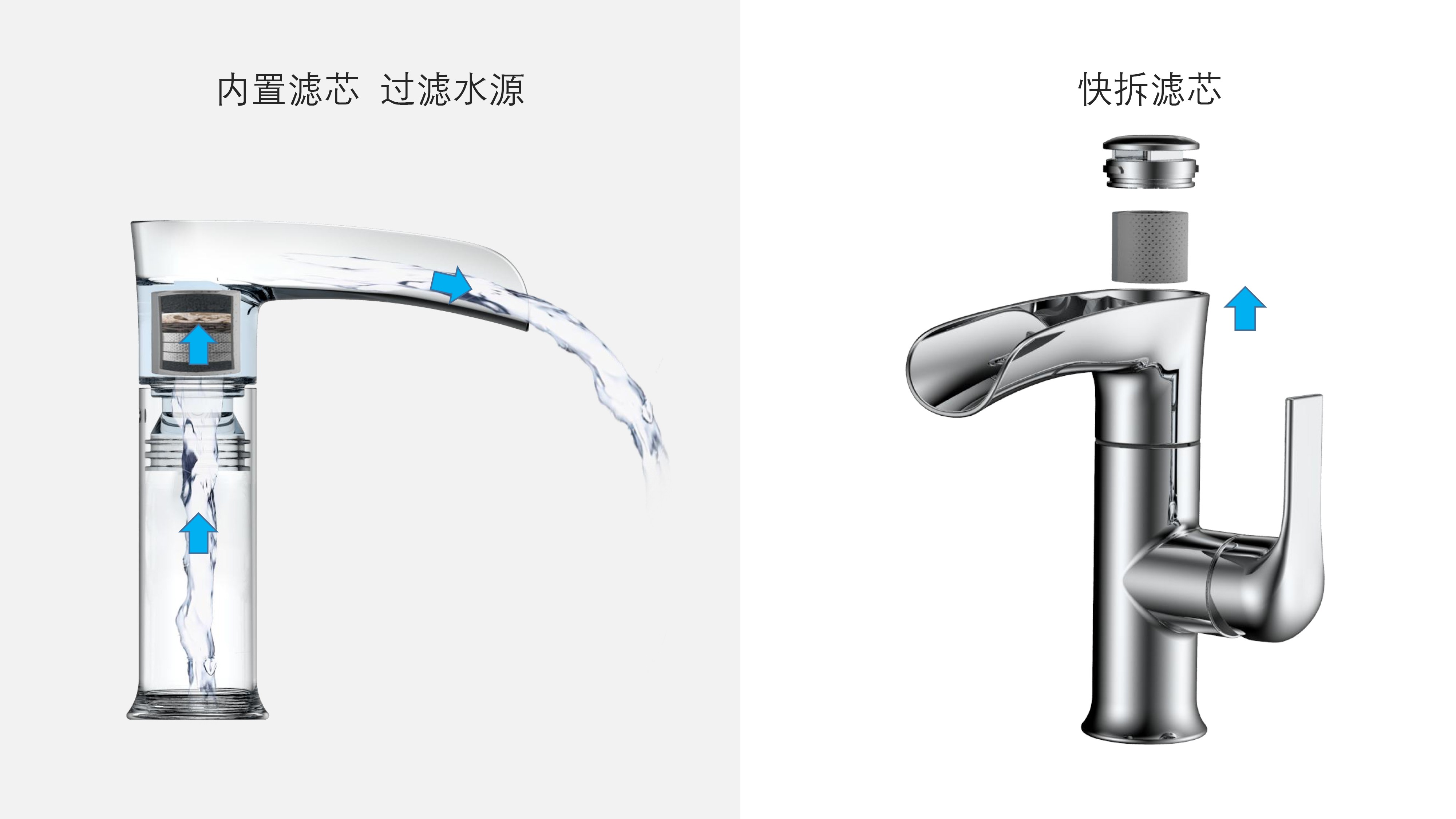 簡約時尚設(shè)計(jì);加厚陶瓷閥芯開合順暢,有效防滴漏;內(nèi)置快拆可更換過濾濾芯;