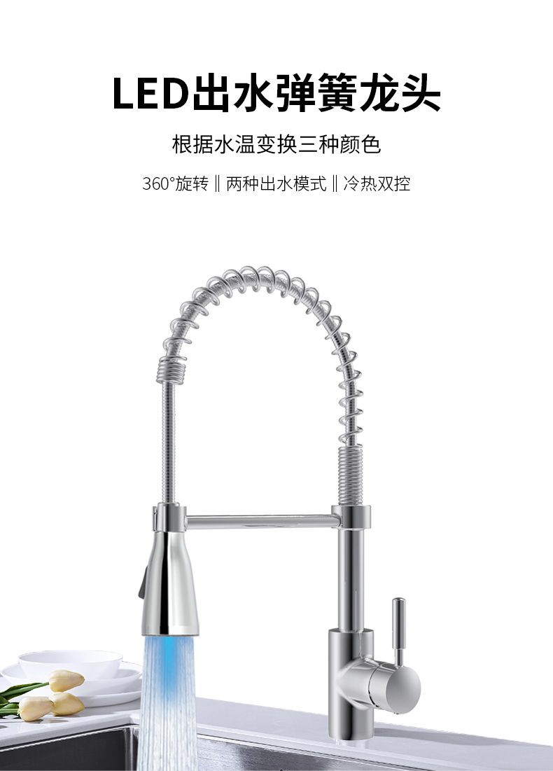 FK8316-F0 LED燈光顏色顯示水溫廚房彈簧龍頭