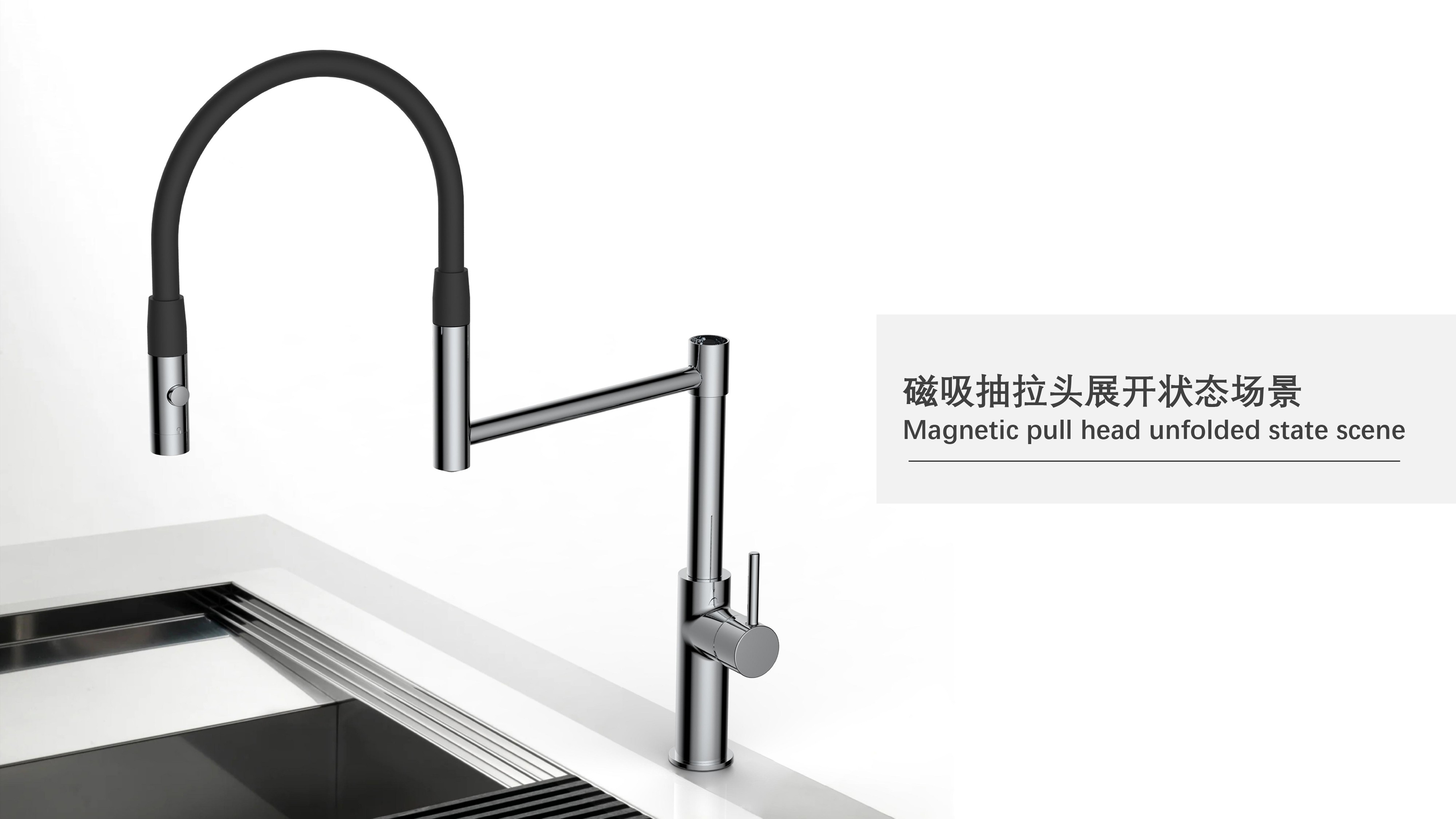 cUPC/ NSF61/ AB100/ NSF372/ Lead Free/ ADA認(rèn)證;磁吸抽拉廚房龍頭;磁吸抽拉頭可旋轉(zhuǎn)展開(kāi)使用,不用時(shí)旋轉(zhuǎn)回原位磁吸固定;兩種出水可根據(jù)需求切換